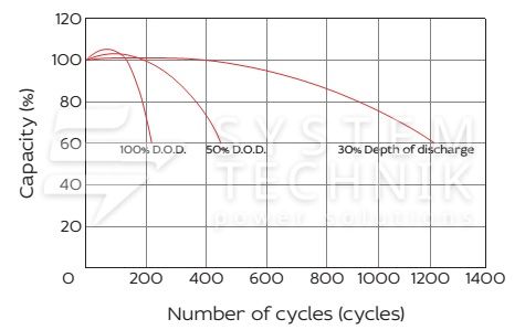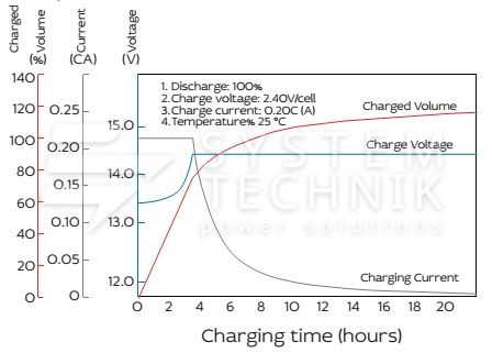 - Срок хранения без подзаряда: 6 мес. при 25°C;