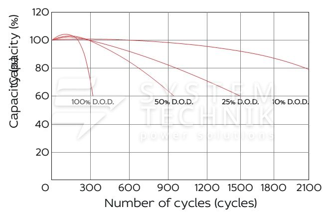 - Рекомендуемое напряжение заряда в циклическом режиме для 12В батареи: 13,8В-14,1В при 25ºС;