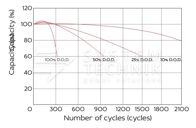 - Рекомендуемое напряжение заряда в циклическом режиме для 12В батареи: 13,5В-14,1В при 25ºС;