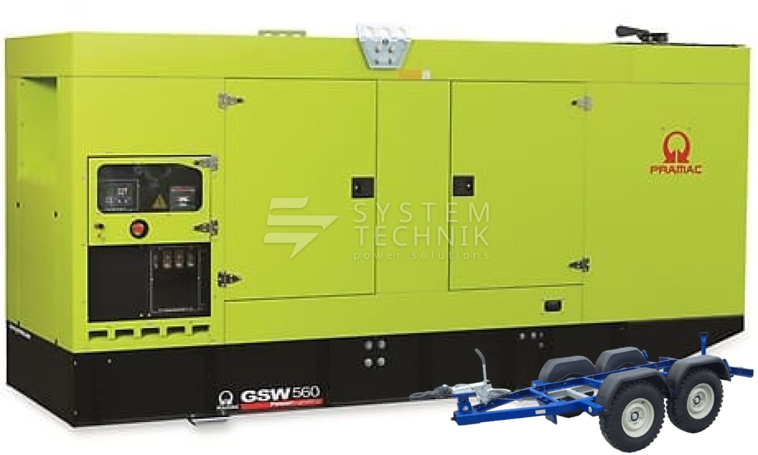 - Дизельный генератор Pramac GSW 560 V 400V В кожухе на прицепе