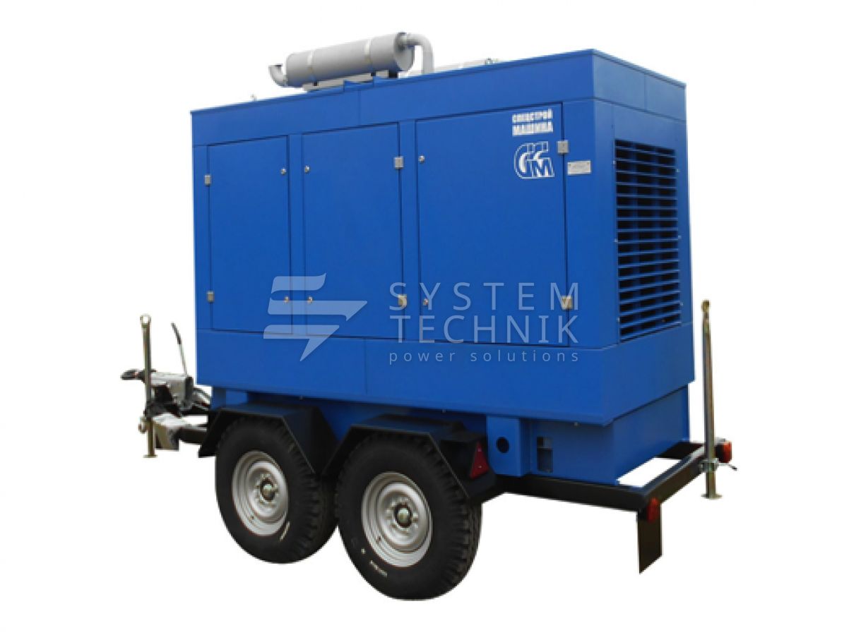 - ССМ ЭД-60-Т400-1РКМ2 (Marelli) в шумозащитном кожухе на шасси на прицепе